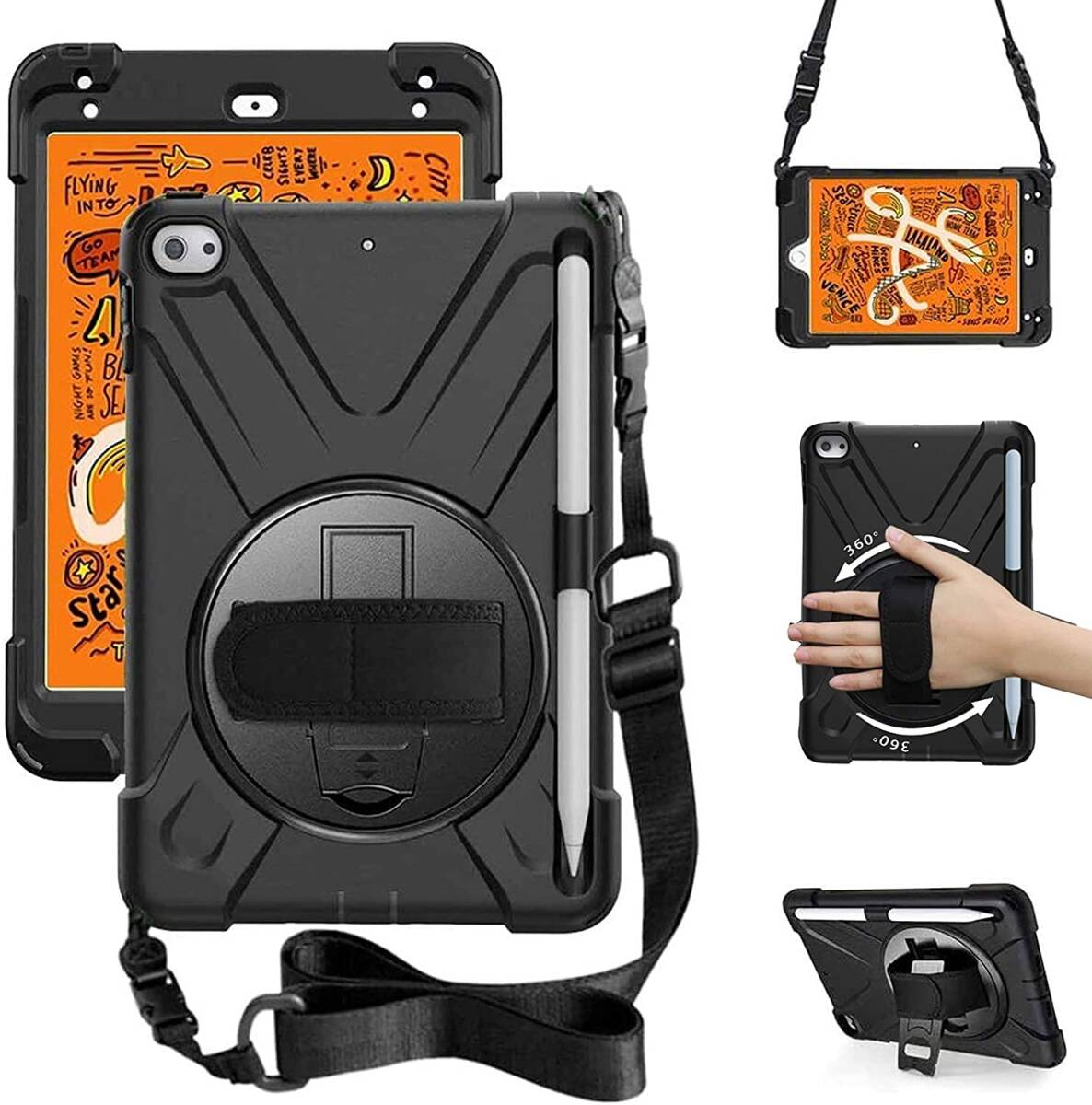 - mini5 ケース 2019 ペンホルダー ケース SIBEITTU ペンシル収納 耐衝撃 衝撃吸収 iPad スタンド ハンドス