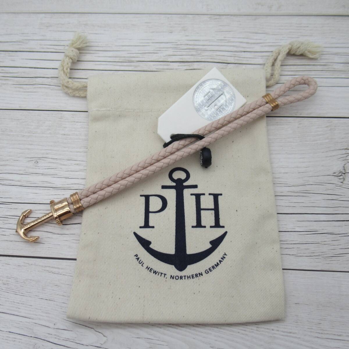 > 【新品未使用】Paul Hewitt ポールヒューイット Sサイズ ピンク ゴールド アンカー ブレスレット レザー 革 ステンレス 錨 アクセサリー