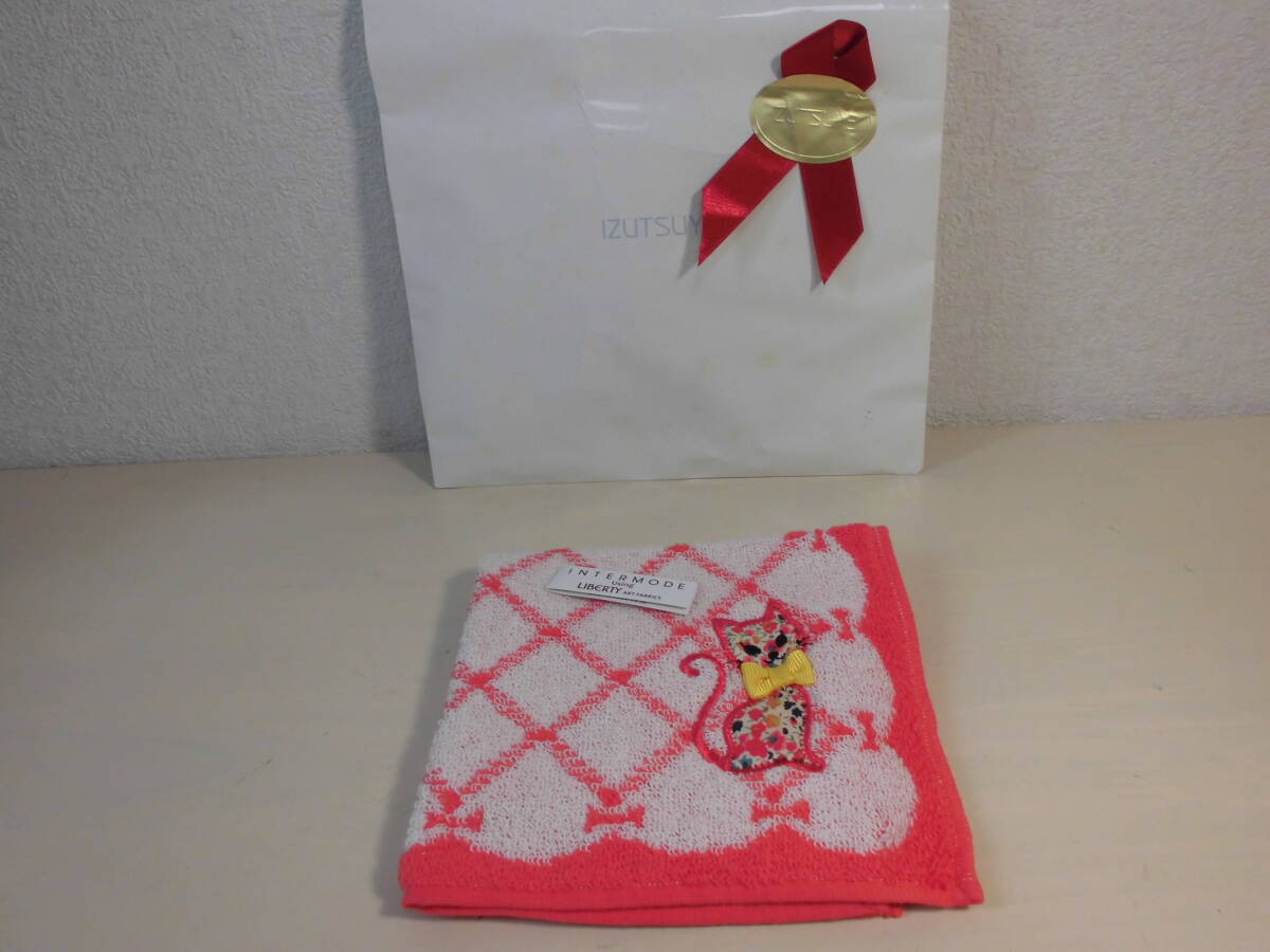 - 送料140円~ 百貨店購入 INTERMODE using LIBERTY リバティ タオルハンカチ ネコ リボン 川辺 (株)NO41027