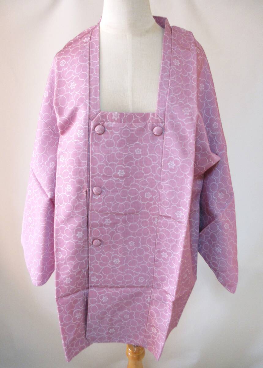 - 50-9.和装 道行コート 梅柄 ピンク 和服 身丈約80.5㎝