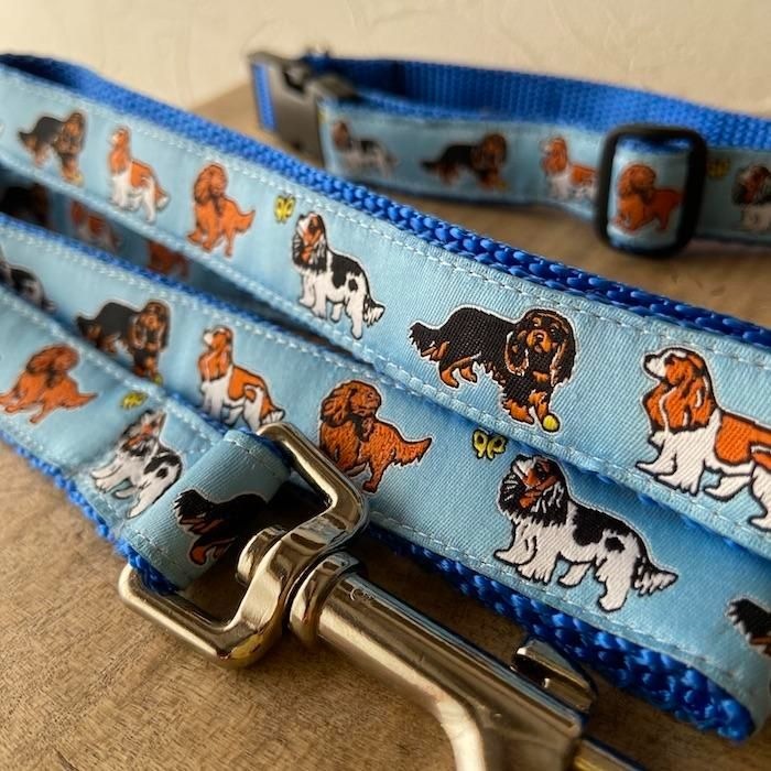 - キャバリアキングチャールズスパニエル・ブルー 首輪&リードのセット アメリカ製