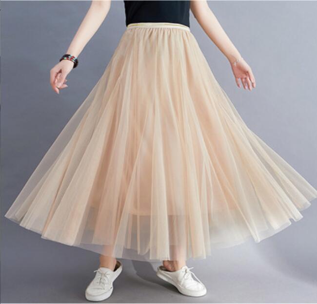 - 人気春夏カジュアル ふんわり*ウエストゴム チュールレースマキシロングスカート ベージュ