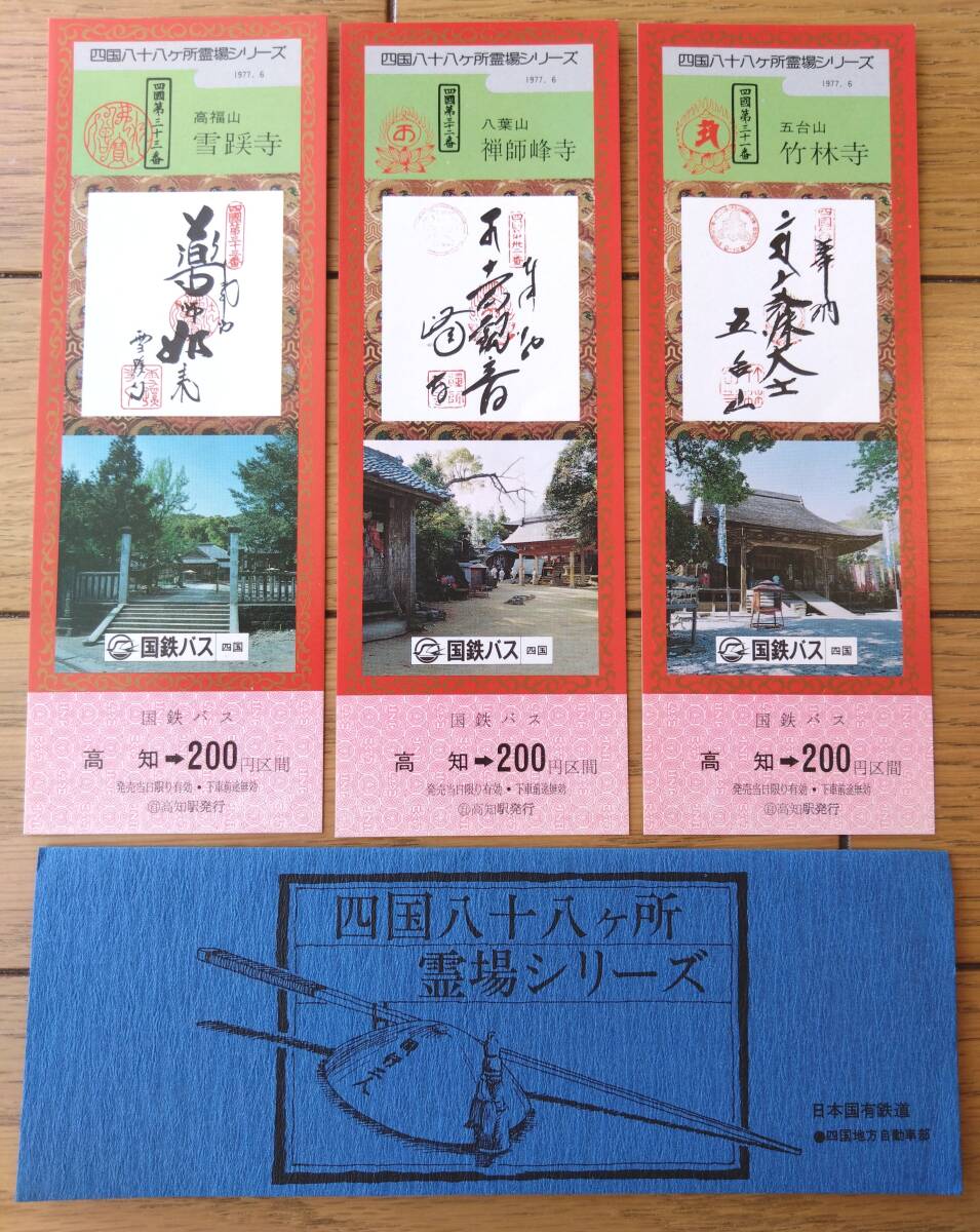 - 未使用【四国八十八ヶ所霊場シリーズ 記念乗車券(絵柄3種類・外袋付き)/国鉄バス】高知駅(昭和52年)