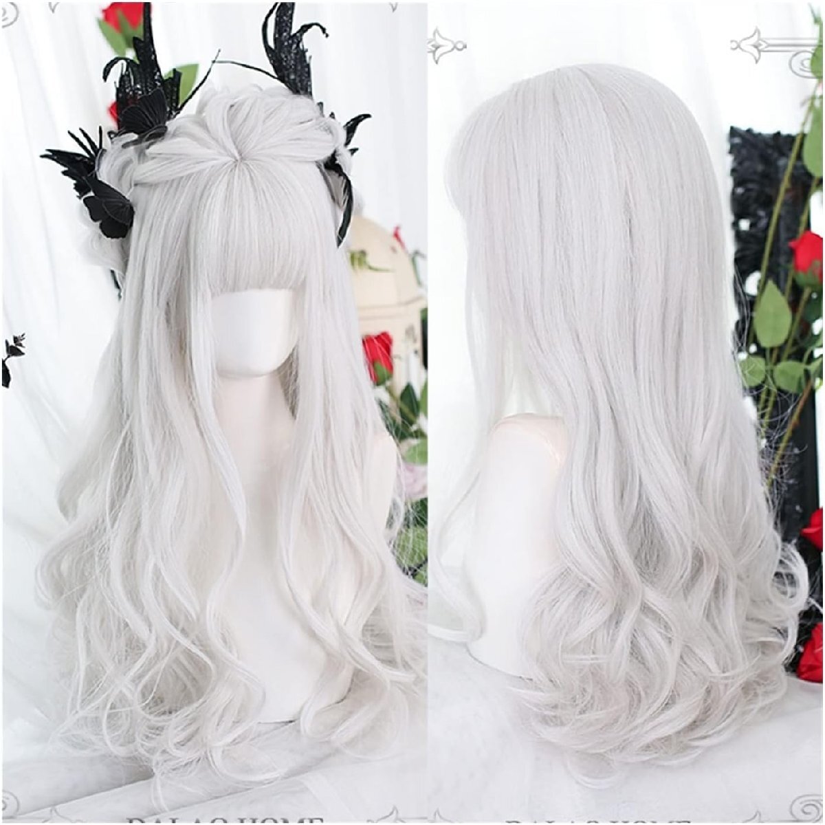 - シルバーホワイト波状かつら自然な長い波状コスプレウィッグ女性パーティーハロウィンクリスマスウィッグ 女性のデイリーヘアアクセサリ