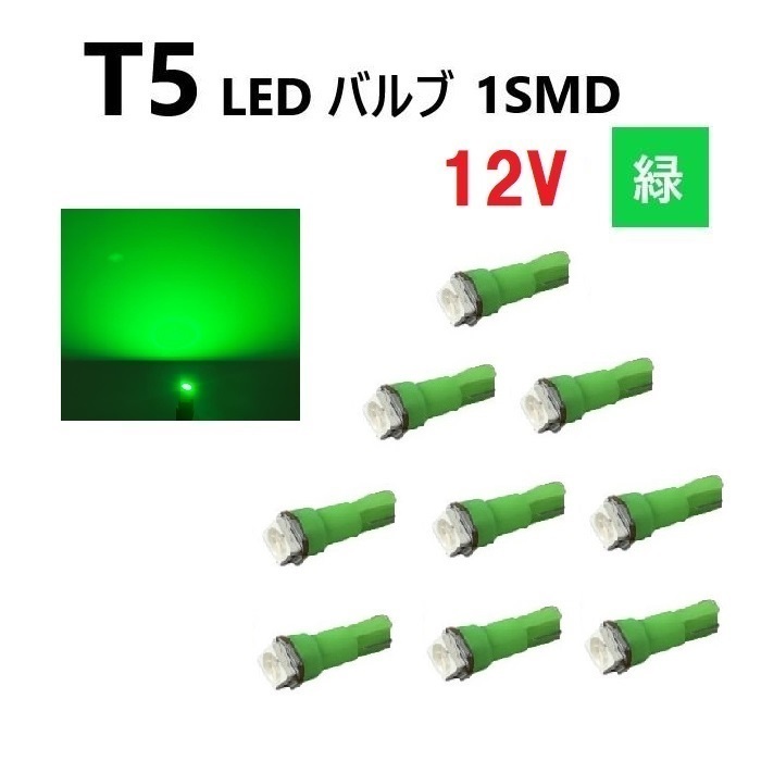 - T5 LED バルブ 緑 12V 【9個】 グリーン SMD ウェッジ メーター エアコン パネル インテリア 定型外 送料無料
