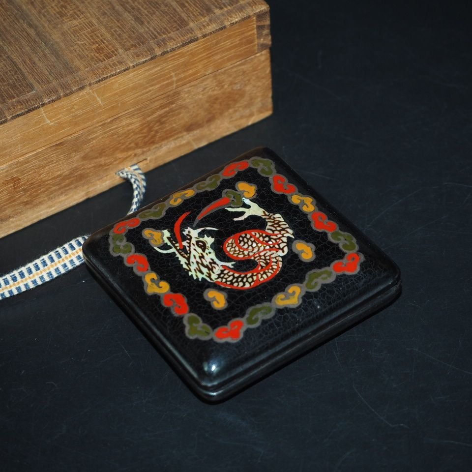 - 【金富士】時代螺鈿雲龍文香合 木箱付 茶道具華道具 検/唐物中国古玩骨董茶道具堆朱紫檀清民国屈輪彫堆黒剔犀