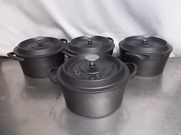 > ボン・ボネール ココット 22cm ブラック 鍋4個セット 黒色 300×230×160 中古厨房 /A-14