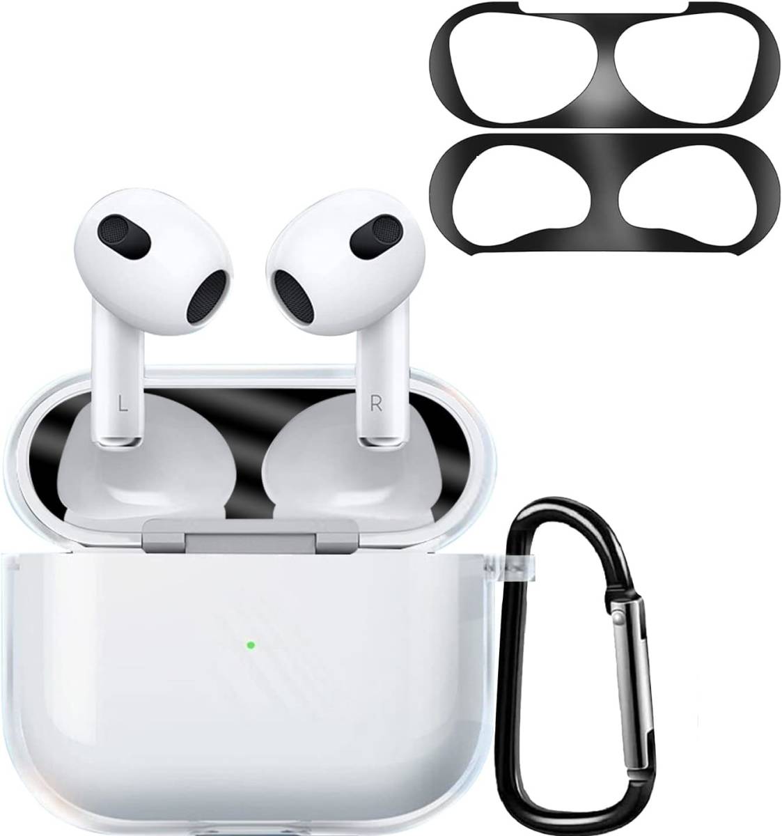 - AirPod 3 ケース クリア【ダストガード付き(ブラック)】 対応 AirPods 3 イヤホン TPU素材 ケース クリアケース& ブラックーダストガード
