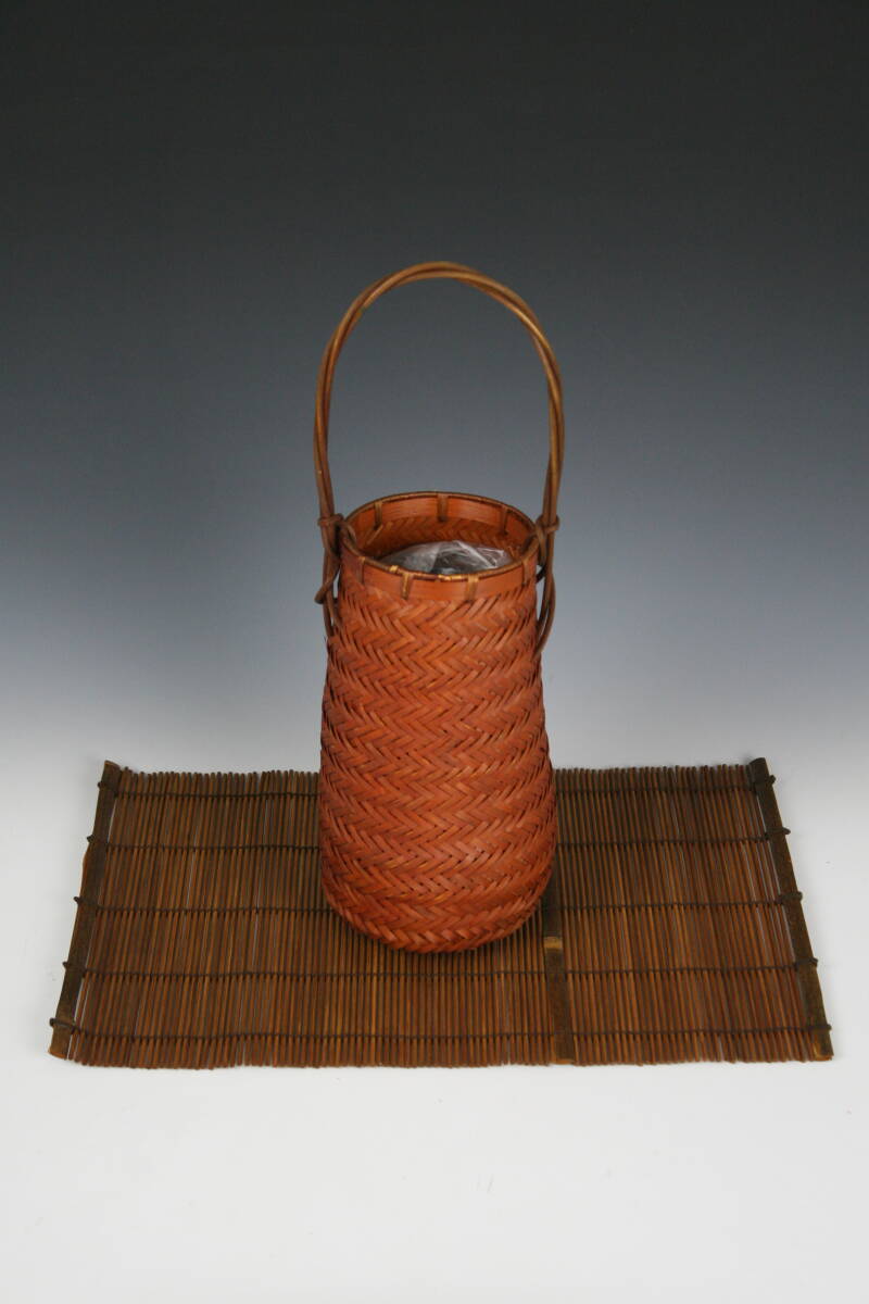 - 竹かご魚籠形花生け 落とし、下敷き簀の子付 茶花入れ