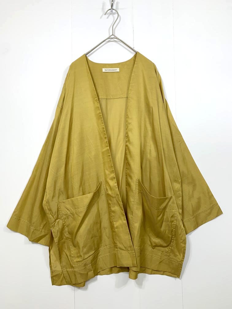 > ゆうパケットOK 美品 OUTERSUNSET アウターサンセット 定価25300円 ノーカラー ガウン カーディガン sizeF/マスタード ■■