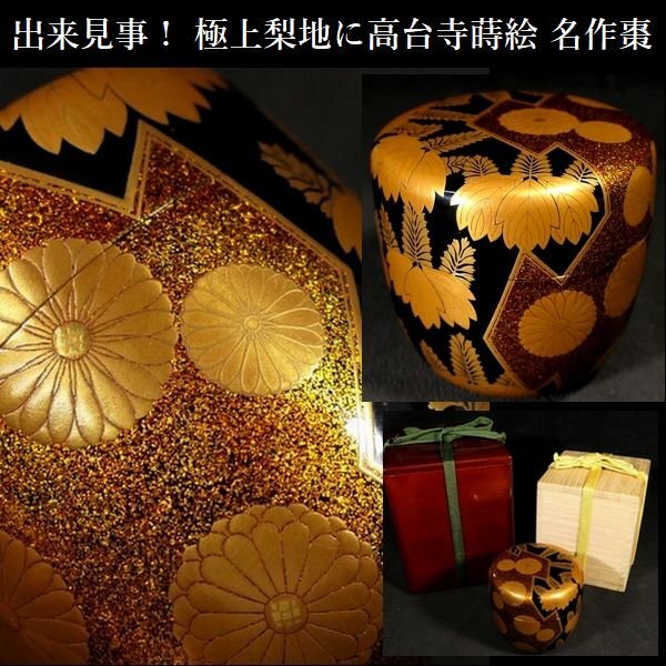 > 【 恵 #1146 】 出来見事! 極上梨地に高台寺蒔絵 菊に桐紋金蒔絵 棗 二重箱 検:一后一兆/谷内友三/山下甫斎