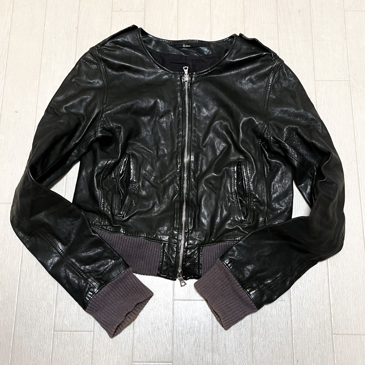 > 和798★ Edition エディション ラムレザー レザージャケット ノーカラー ジップアップブルゾン ririジップ 38 ブラック レディース