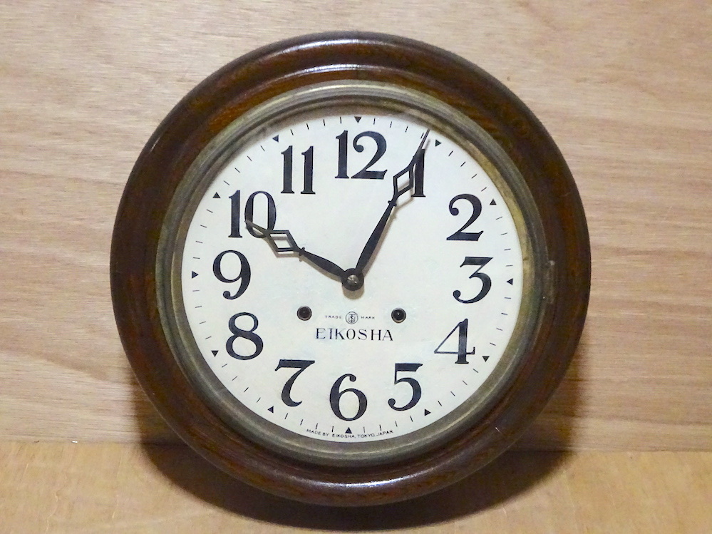 - ■即決■ 動作品 調整済み EIKOSHA 英工舎 丸時計 ゼンマイ式 柱時計 掛け時計 ゆらゆらガラス アンティーク レトロ ヴィンテージ