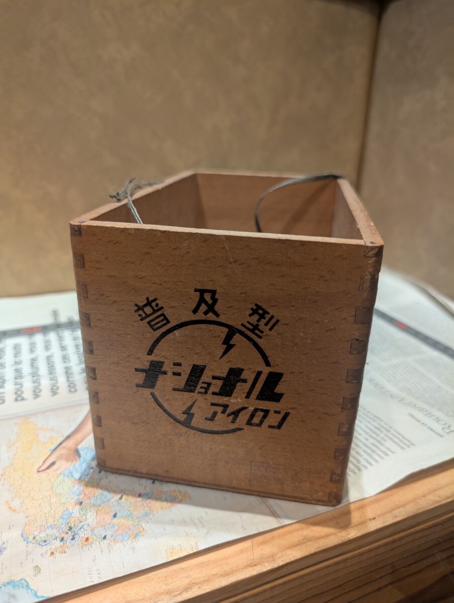 - 当時物【ナショナル 電気アイロン 収納ケース】松下電器 National 収納 小物入れ アンティーク 木製 木箱 昭和レトロ ビンテージ 古道具