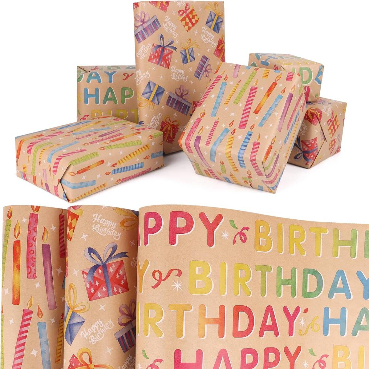 - 贈る人の心を包む幸せラッピング 誕生日 包装紙 ラッピングペーパー ギフト 3ロール 44×300cm クラフト紙