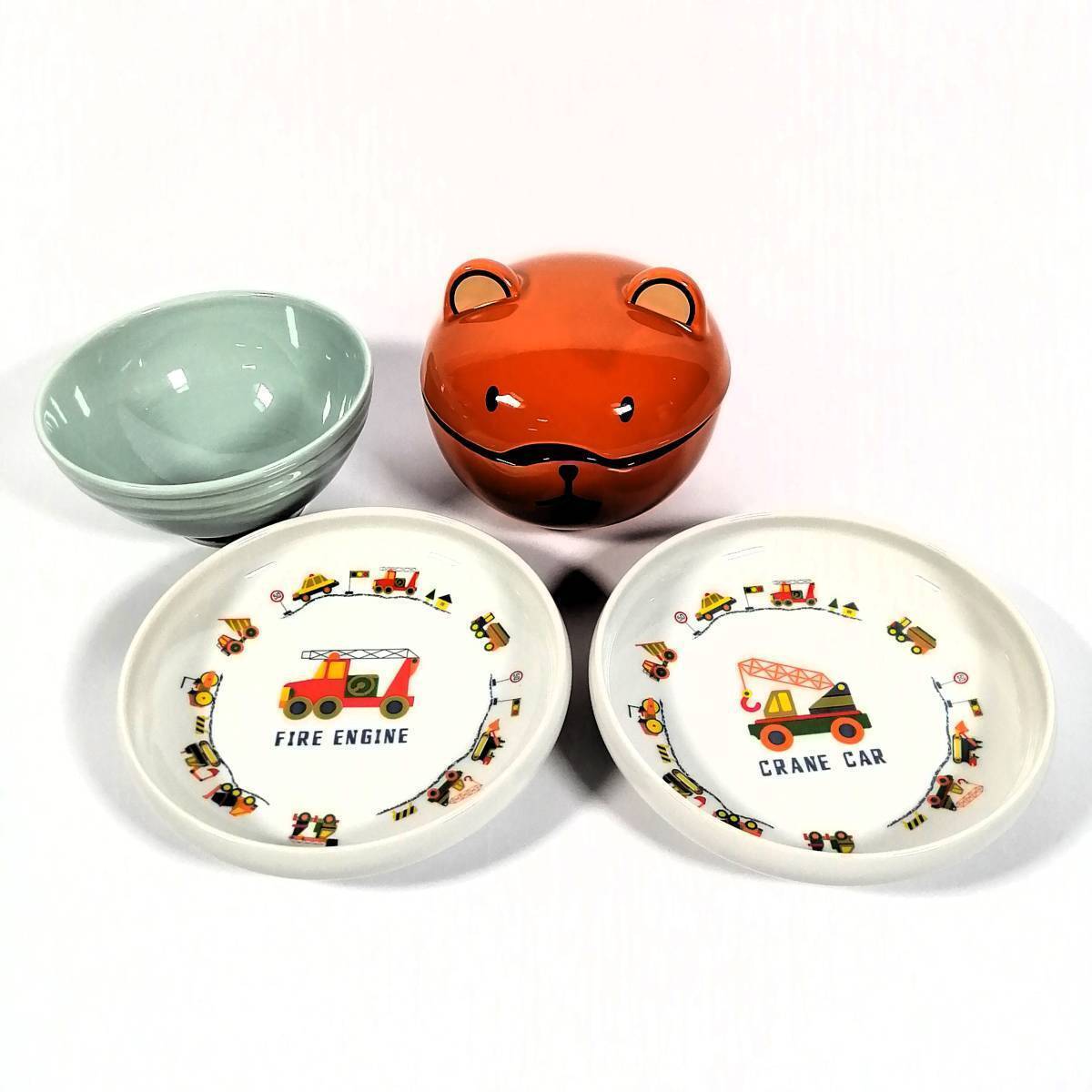 > 未使用 食器4点セット KINTO キントー ボウル ポタリーハウス はたらくくるま くまさん仲良しどんぶり【アウトレット品】 22 00647