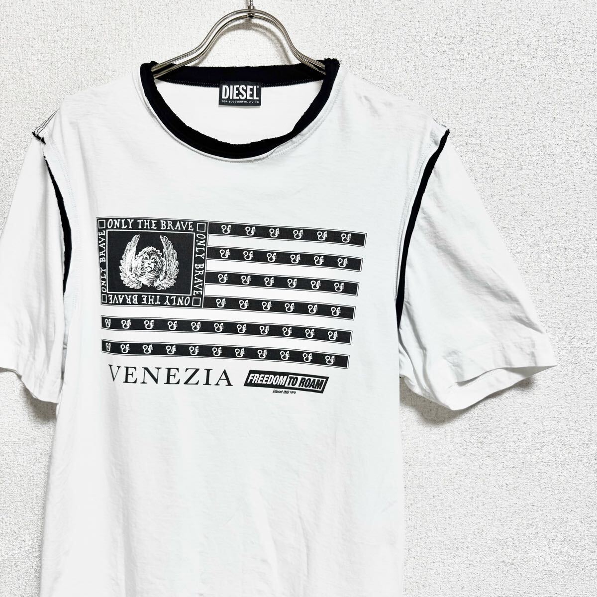 > DIESEL ディーゼル 半袖Tシャツ プリントTシャツ カットソー プルオーバー モノトーン メンズ サイズ L相当 *AA
