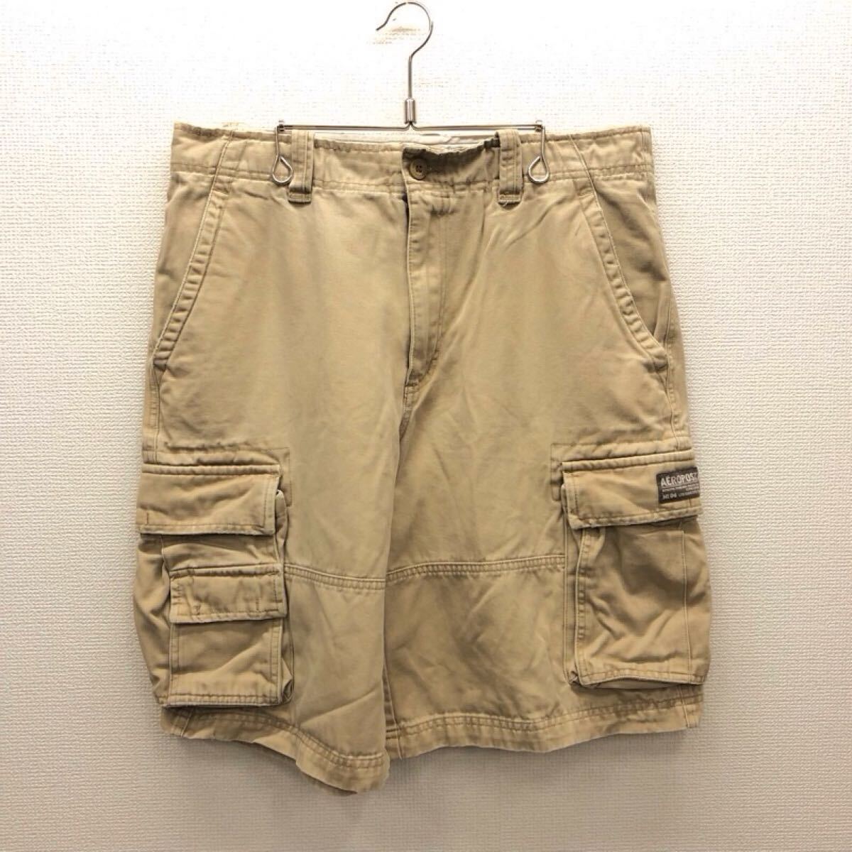 - 【GG164】AEROPOSTALE W34 カーゴハーフパンツ ベージュ メンズブランド古着 エアロポステール ショートパンツ 送料無料