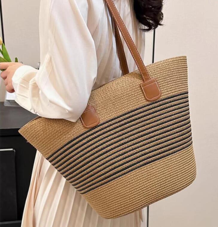 - 人気推薦 / レディース 麦わら風 かご風 ストローバッグ ナチュラル かわいい 大容量 軽い 夏バッグ ストライプ ワンサイズ / 柄3
