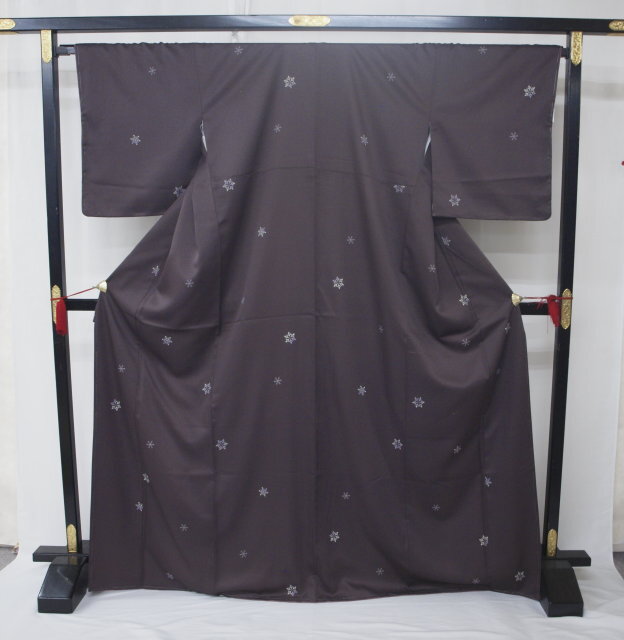 - 東レシルック小紋 袷0983 濃色(こきいろ)雪花 お仕立て上がり