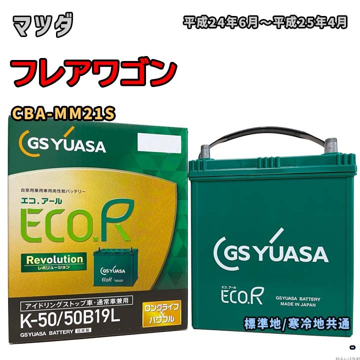 > バッテリー GSユアサ ER-K-50/50B19L マツダ フレアワゴン CBA-MM21S 平成24年6月~平成25年4月 充電制御車 K-42タイプ 1378