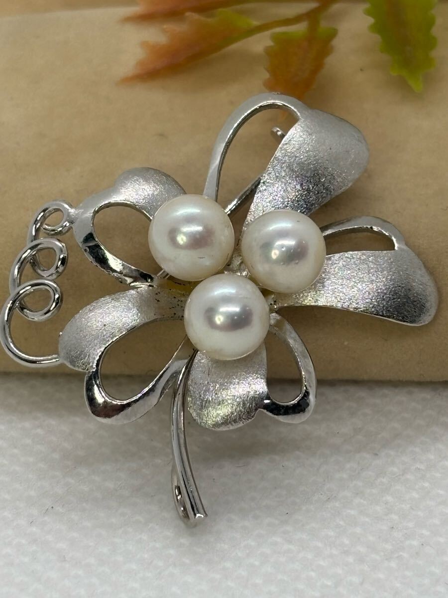 - 本パール真珠 ホワイトカラー SILVER ブローチ 6.36mm(759) アクセサリー 本真珠 ブローチ