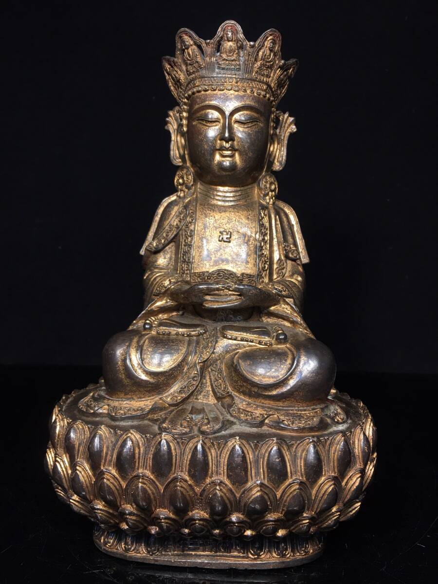 - 清 仏教古美術 古銅塗金彫 観音像 仏 仏像 文案置物 密宗密教 供養品 時代物 古董品 骨董 收集 旧家蔵出 唐物 中国古玩 古美術品