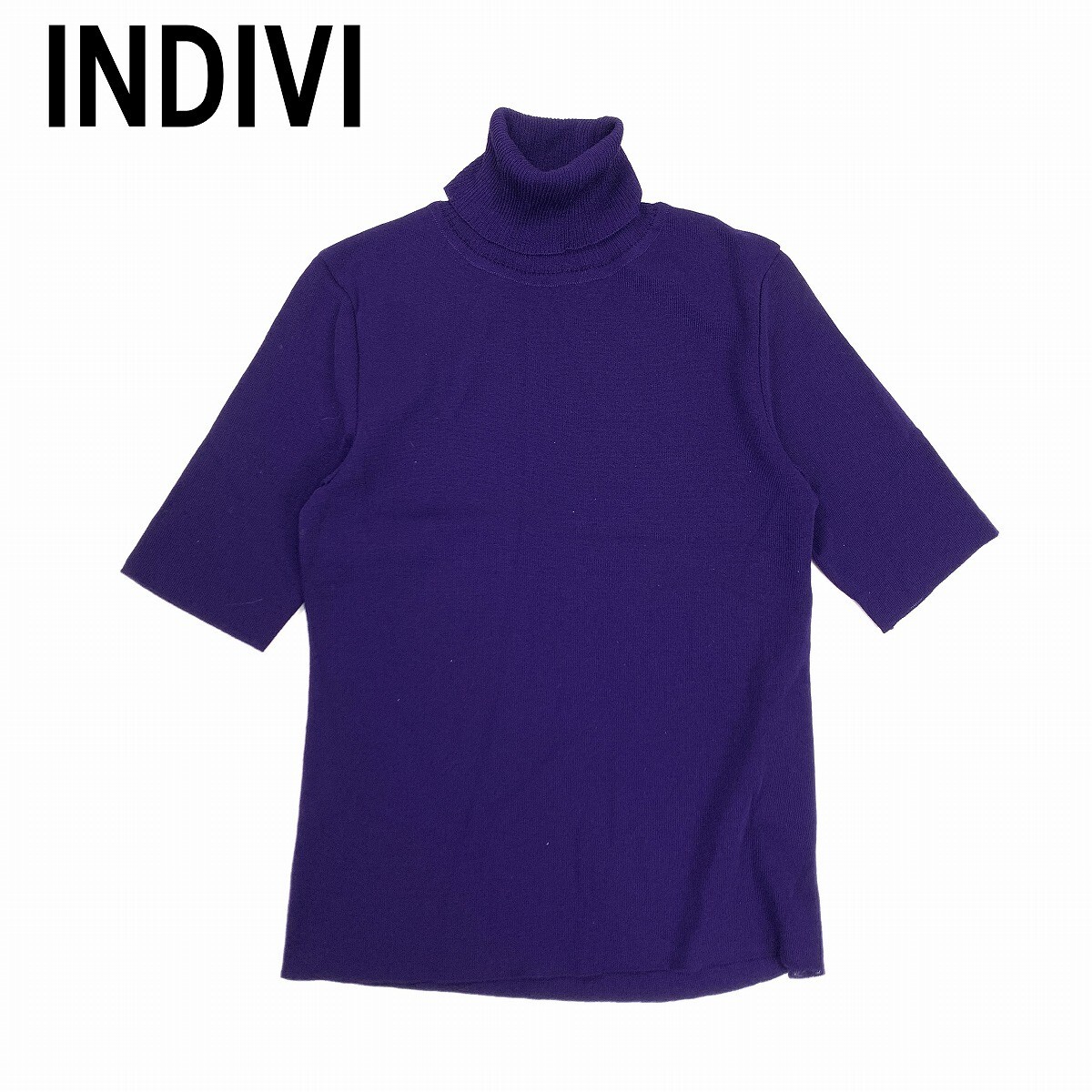 - INDIVI インディヴィ 半袖ニット セーター レーヨン タートルネック 紫 パープル 38 YC805