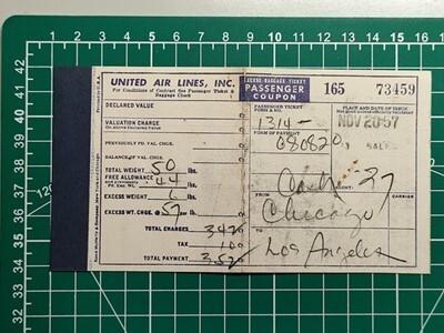 - a1【ユナイテッド航空】UA United Air lines Excess Baggage Ticket Passenger Coupon 1957 昭和32年 超過手荷物券