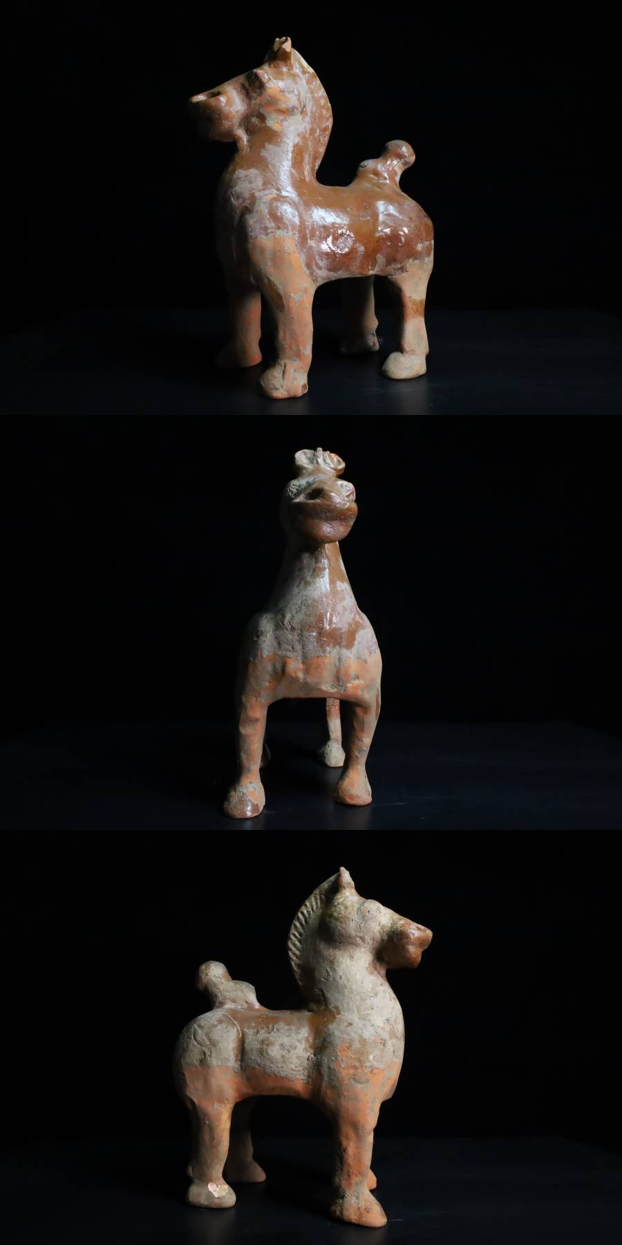> ◇雅◇ 中国古玩 兵馬俑 古い加彩俑 馬俑 高さ34cm/3104g 時代物 馬古陶器 出土品 発掘品 動物 置物 /RYO.25.7 [L27.2] V2