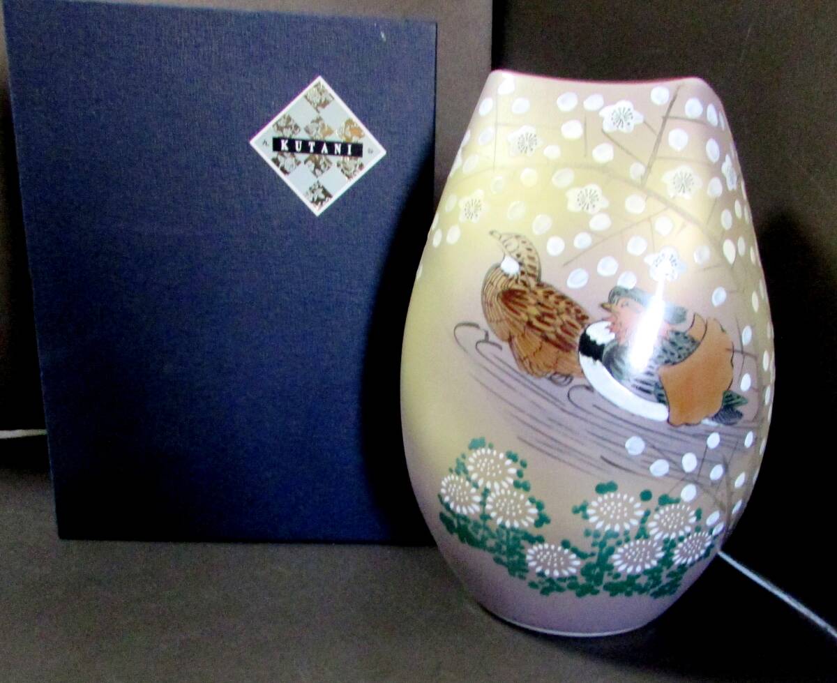 > 九谷焼 玉竜(九谷/玉竜)花瓶 花入 壺 色絵花鳥 インテリ飾り 胴径(約17㎝xH25㎝)