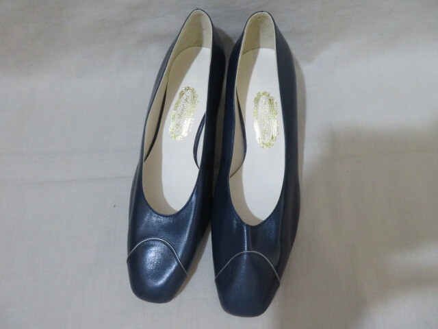 - ☆未使用 銀座ヨシノヤ GINZA YOSHINOYA ネイビー レザー パンプス 22.5cm E☆