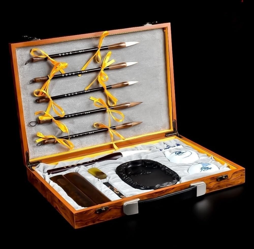 - 書道セット 文房四宝セット 習字 初心者 書道筆 毛筆セット 筆墨紙すずり 書道用具 精緻で美しい 写経 置物 逸品 収納箱