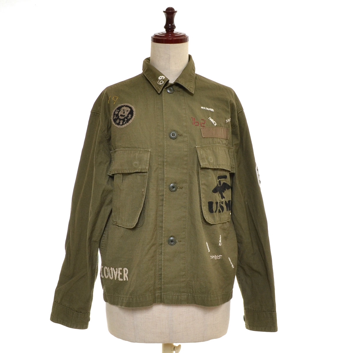 > ■552548 Johnbull ジョンブル ●ミリタリーシャツジャケット 刺繍 US MC リップストップ AS889TXY サイズM レディース グリーン