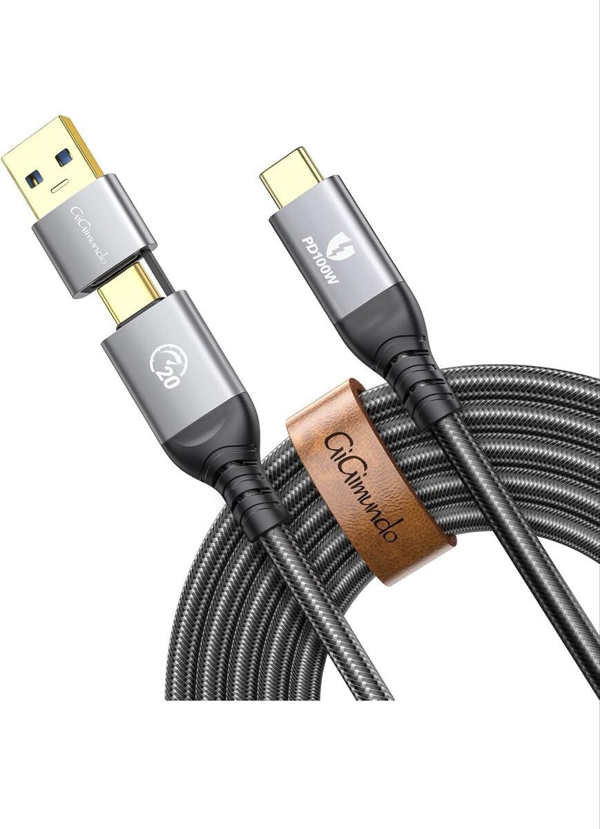 > GiGimundo USB 3.2 Gen 2x2 ケーブル 2-in-1 USB-A/C to USB-C【20gbpS高速データ転送 4K 100W急速充電 4K@60Hz映像出力 PD対応 】