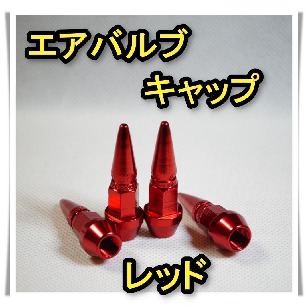 - [送料無料] エアバルブキャップ 4個 (レッド)スパイク型 アルミ ロング アルミ削り出し