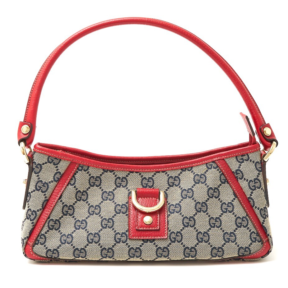 > GUCCI グッチ アビー ハンドバッグ 130939 コンパクト ミニBAG GGキャンバス×レザー ベージュ×ネイビーレッド×ゴールド金具 レディース