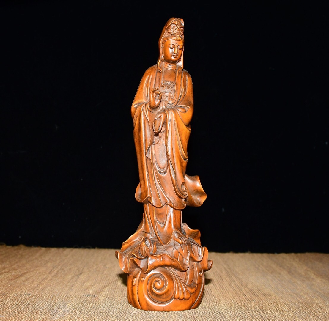 - 蔵友旧蔵出 小葉黄楊木製 細密彫 滴水觀音像 文房具 供養品 置物擺件 稀少珍藏品 古賞物 中国古玩 中国古美術品