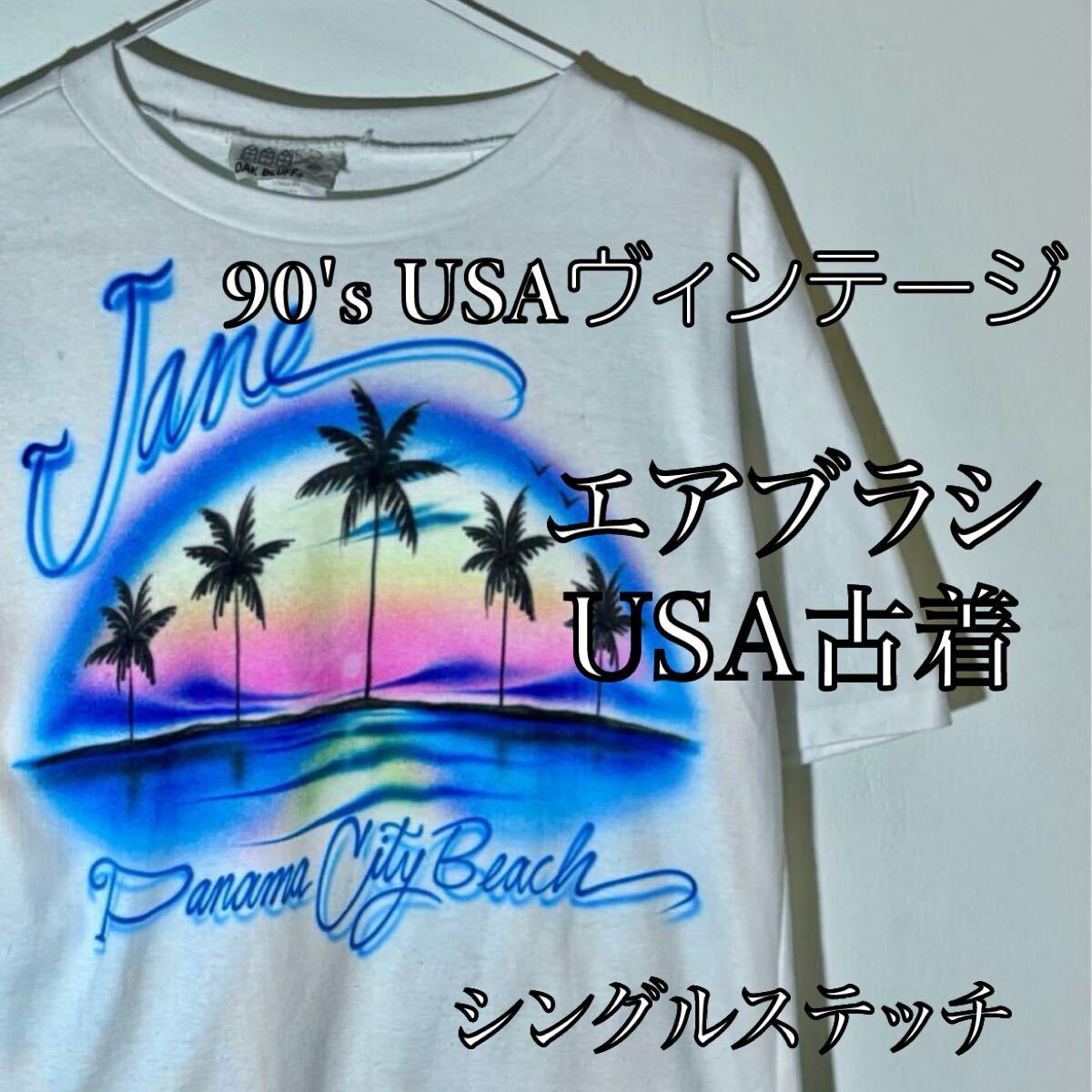 > USA製 80's 90's アメリカ ヴィンテージ シングルステッチ Tシャツ エアブラシ パームツリー カリフォルニア ホワイト 白 古着