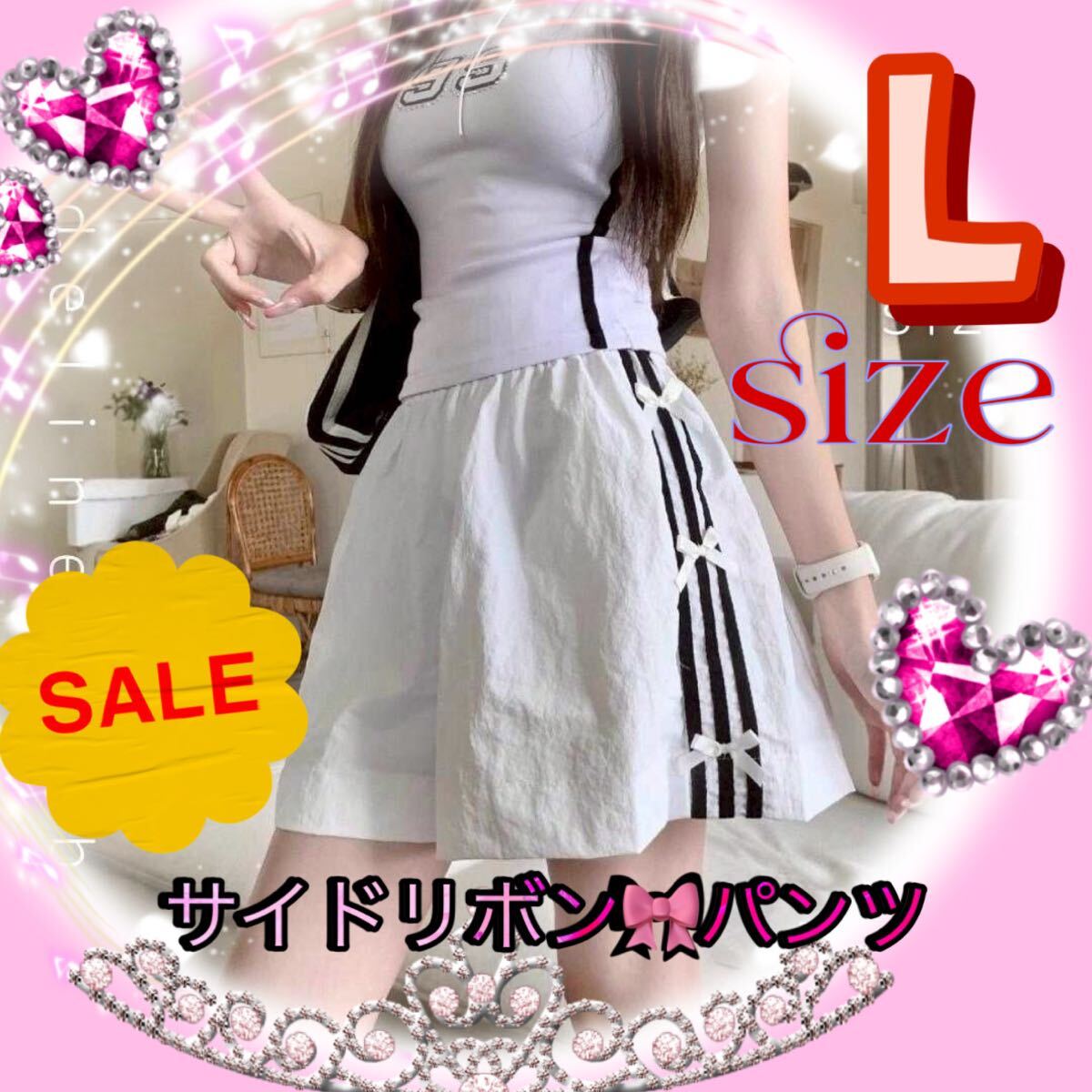 - サイドライン リボン ショートパンツ L ガーリー 美脚