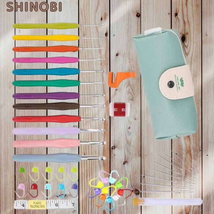 - かぎ針 編み針 レース針 手芸 編み物 毛糸 セーター 帽子 基本入門キット ケース付き 段数マーカー 巻尺 リングナイフ 目数段数計 毛糸針