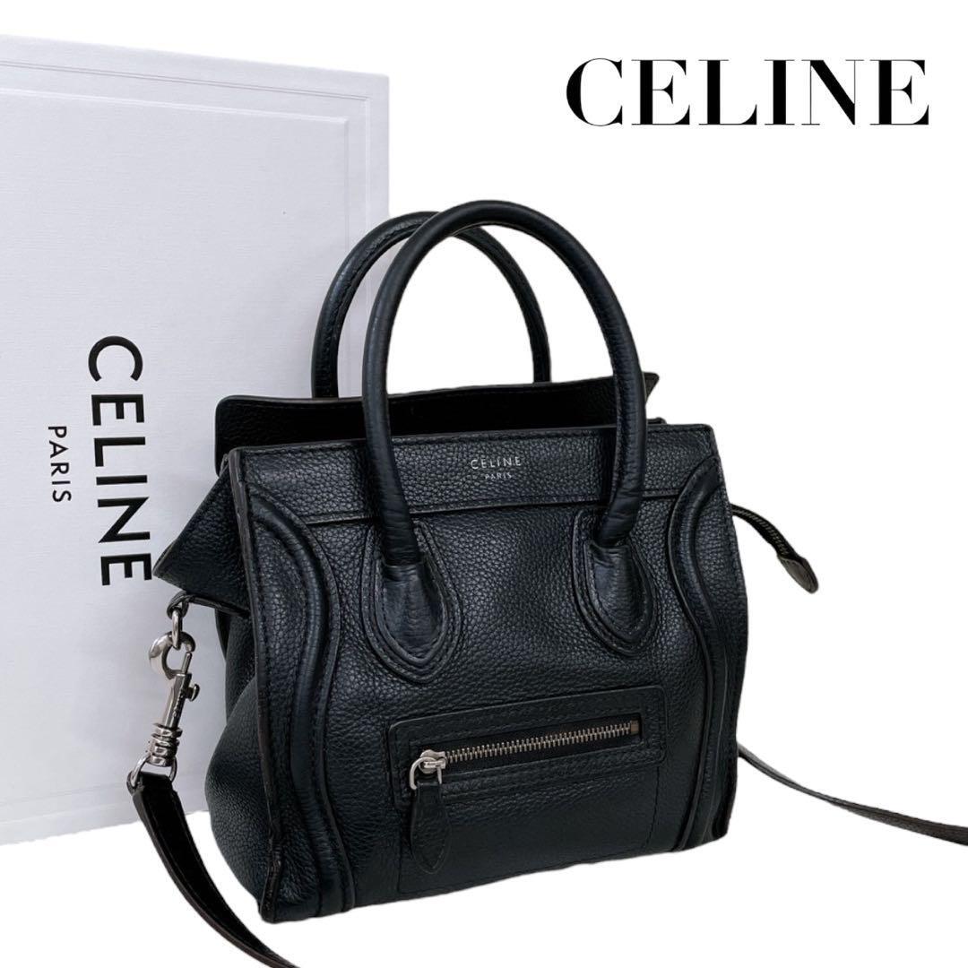 - セリーヌ ラゲージ ナノショッパー シボ革 2way ハンドバッグ ブラック 4287-4