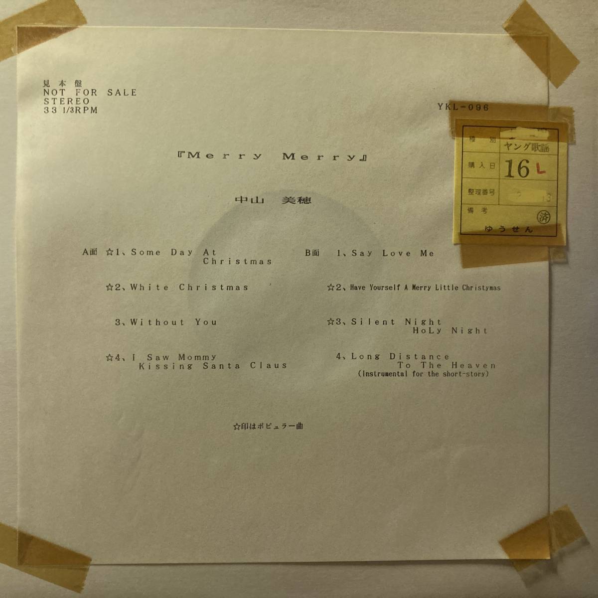 > 状態良好 正規なし 滅多に出品されないゆうせんプロモオンリーLP 中山美穂 Merry Merry LPレコード 和モノ