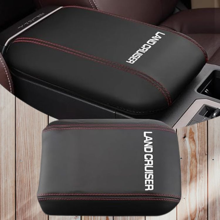 - ランドクルーザー250系専用 革アームレストカバー ランドクルーザーカスタム 上質な革 柔軟性 肘置き ストレス解消 高光沢 レッドステッチ