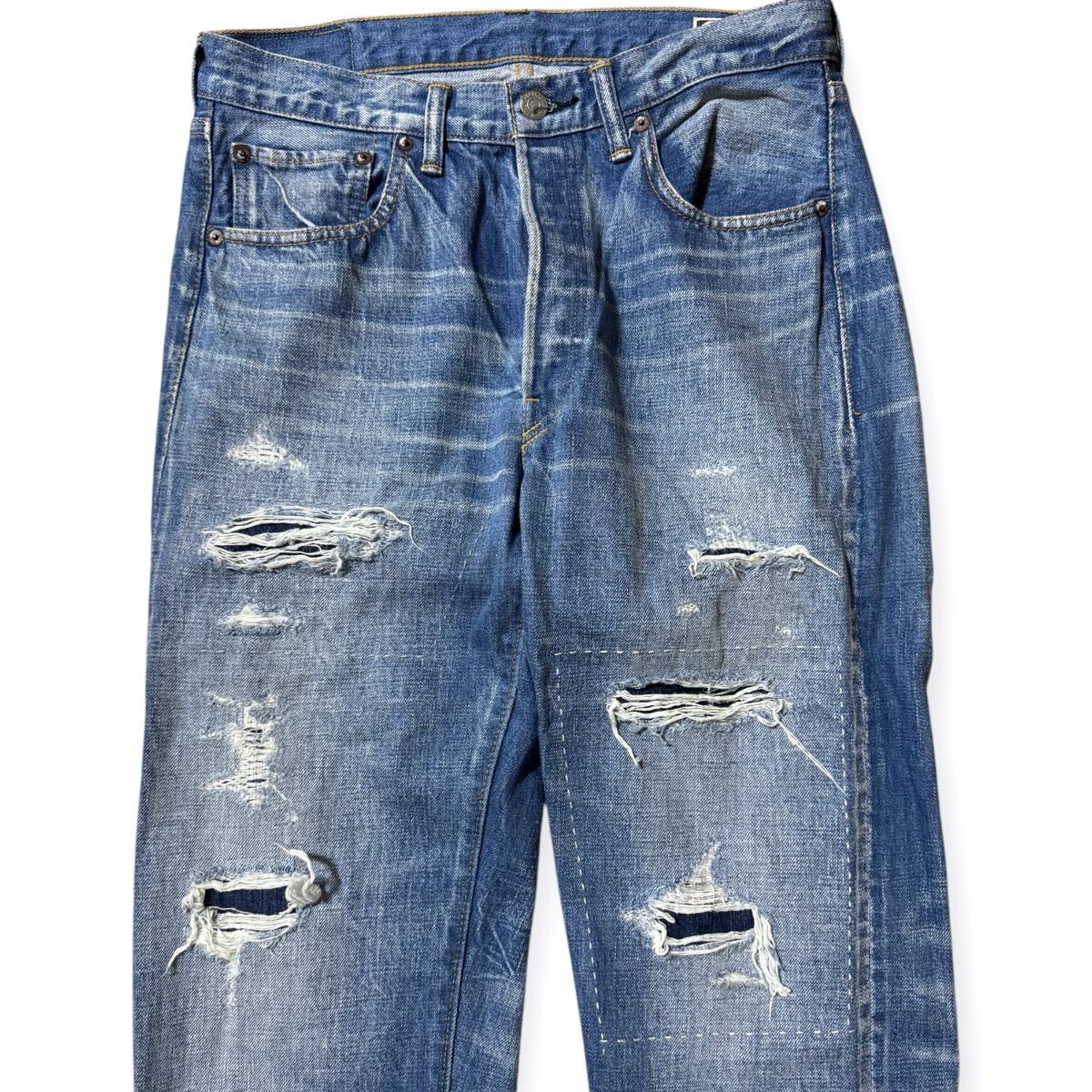 > 1102Just Little bit Longer Straight Denimクラッシュリペア ストレートジーンズ 13.7oz セルビッチ 岡山児島製