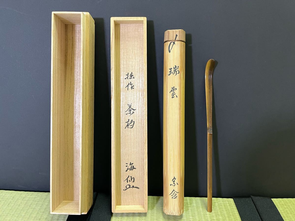 - 裏千家 井口海仙 宗含 排作 銘 『瑞雲』 茶杓 共箱 茶器 茶道具 兄 淡々斎
