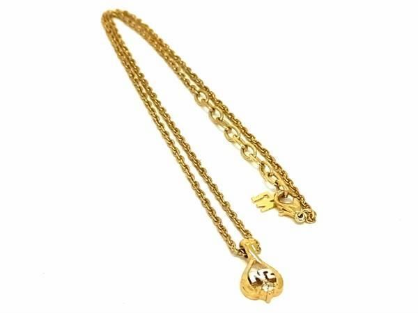 - ■美品■ NINA RICCI ニナリッチ ロゴモチーフ ラインストーン ネックレス ペンダント アクセサリー レディース ゴールド系 DD7117