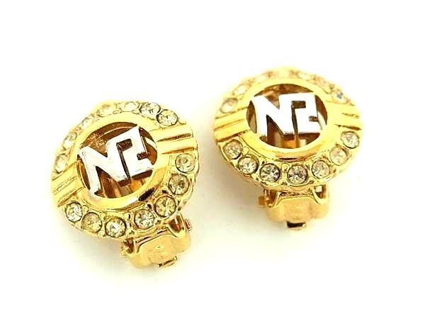 > ■美品■ NINA RICCI ニナリッチ ヴィンテージ ラインストーン クリップ式 イヤリング アクセサリー レディース ゴールド系 DE6717