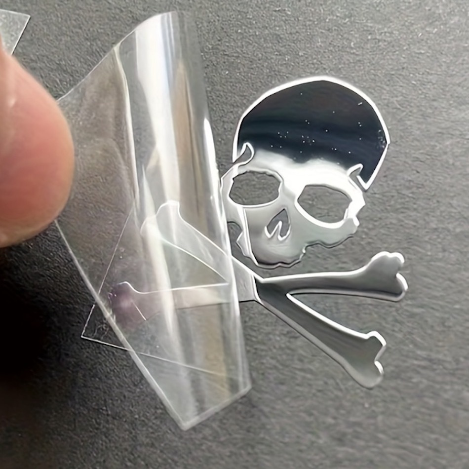 - ステッカー がいこつ シール 車用 3D プラスチック 光沢 どくろ スカル 立体 3cm シルバー 銀色 貼り付け 両面テープ ロゴ バイク t7607