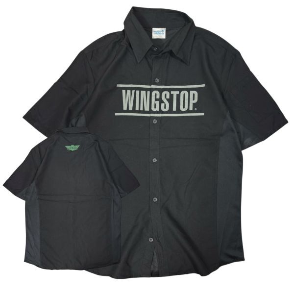 > ★両面WINGSTOPロゴプリント★image solutions 半袖ワークシャツsizeS サイドメッシュ ペンホルダー 古着 クリーニング プレス済み 2403